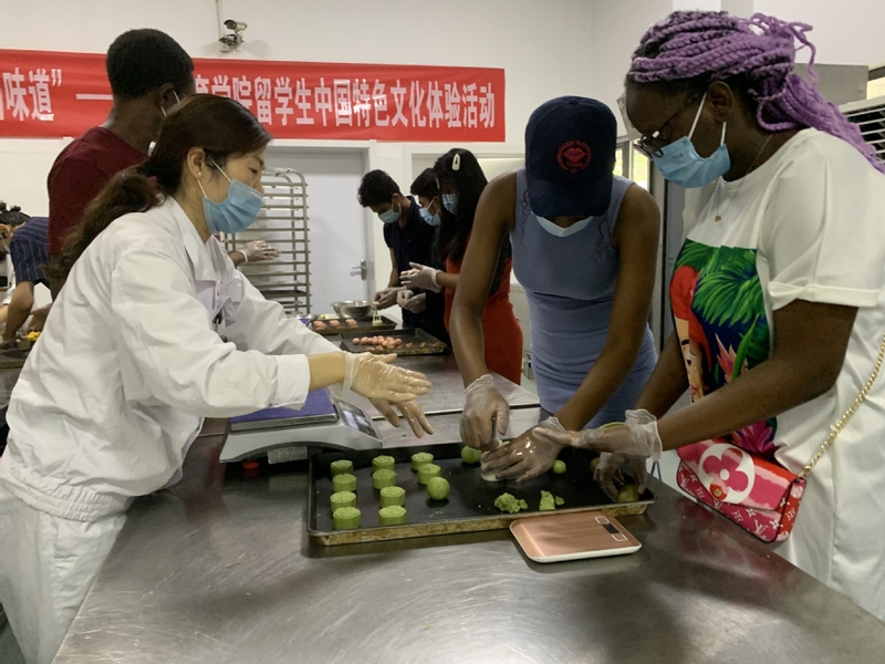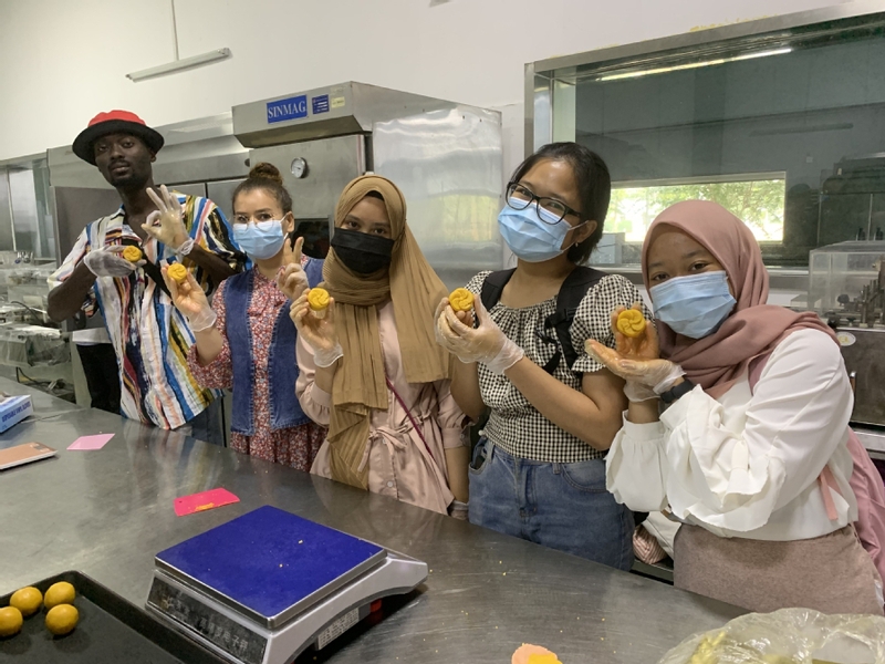 称馅、揉按面团、模具定型……来自赞比亚、印度尼西亚、孟加拉等国家的职工们在食品公司老师的指导下,按照步骤,有模有样地制作起来。来自乌兹别克斯坦的博龙是第一次做月饼,因此充满了好奇与期待,他说:“月饼看起来很容易做,但是做起来却需要很多技巧,不过可以吃到自己做的月饼,感觉很棒!” 有的职工们分工合作,虽然过程中遇到了一些问题,但经过反复练习,最后都顺利完成了。