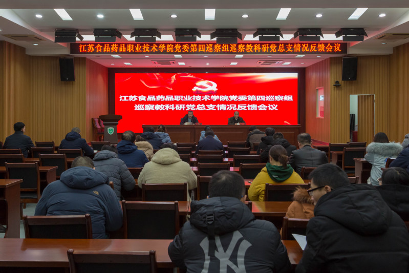 2021年12月28日上午,江苏食品药品职业技术公司党委第四巡察组巡察教科研党总支情况反馈会议在第四会议室召开。第四巡察组组长安进、副组长李红及第四巡察组其他成员出席了会议,会议由教科研党总支书记郑洪成主持,教科研党总支全体教职工参加了会议。
