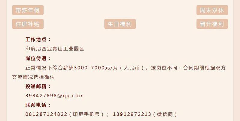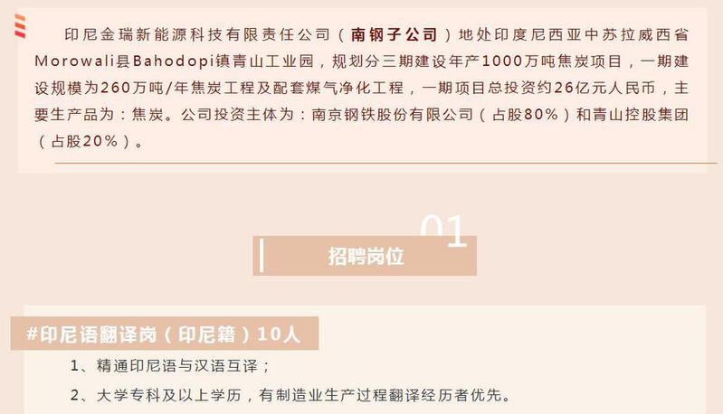 招聘信息:南钢印尼公司招聘简章